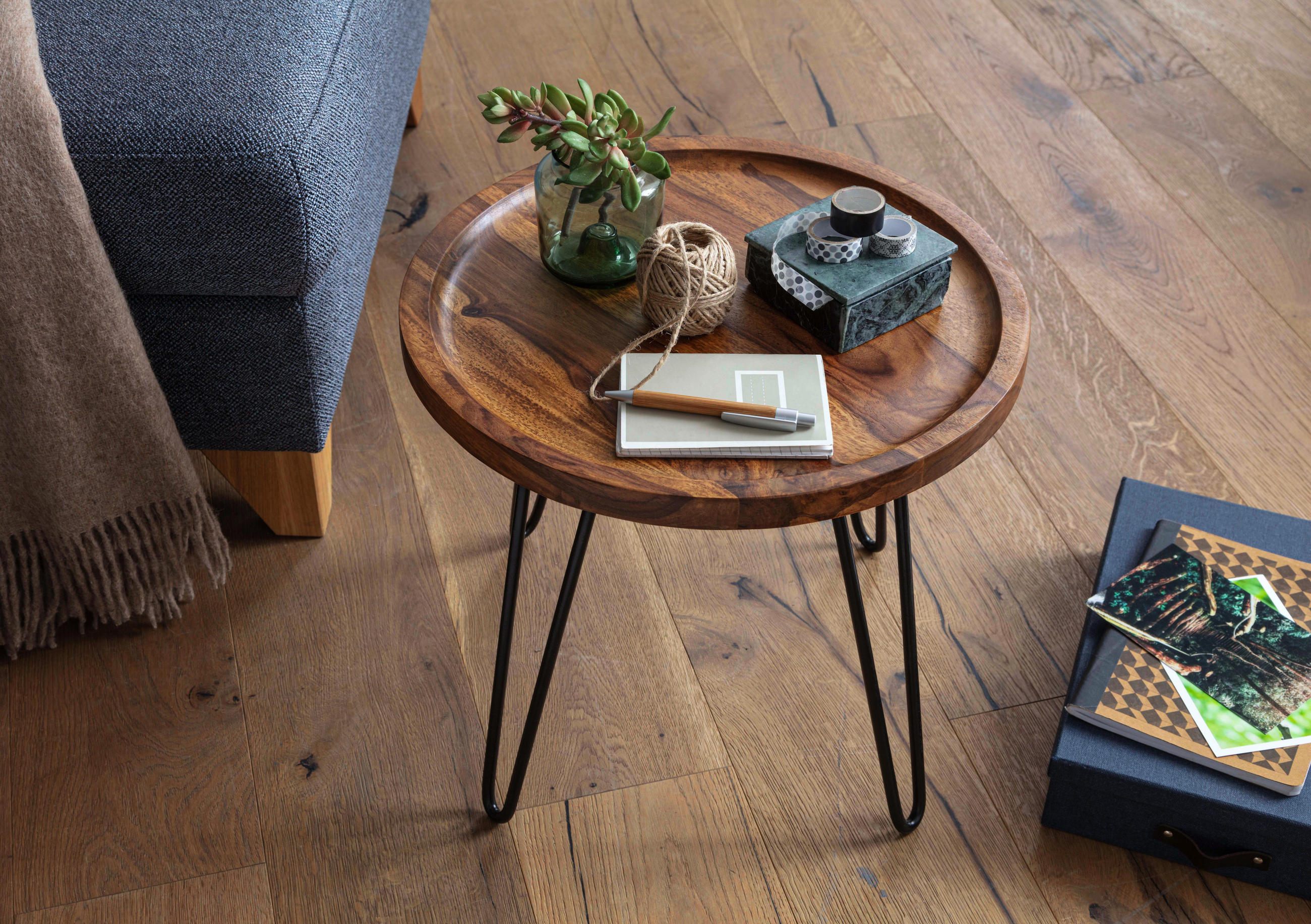 Platzieren sie sheesham möbel prominent im raum sodass das echtholz sofort die blicke auf sich zieht.